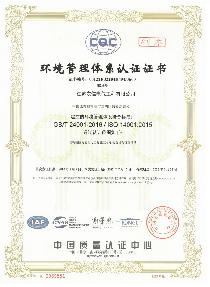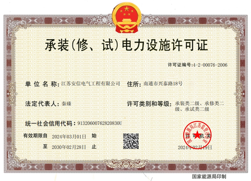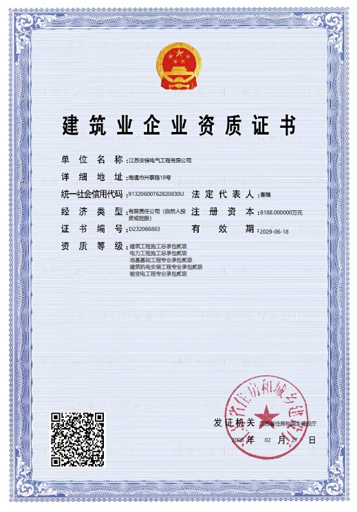 在創(chuàng)業之初,公司就堅持高起點的戰(zhàn)略思路,廣納賢才,集聚行業精英,創(chuàng)新發(fā)展,做優(yōu)企業品牌。現已取得:承裝二級、承修二級、承試二級,電力工程施工總承包二級,輸變電工程專業承包二級,建筑工程施工總承包二級,建筑機電安裝專業承包二級,地基基礎專業承包二級資質證書,并通過了質量、環(huán)境、職業健康和安全管理體系認證,確保各項工作有序管控。